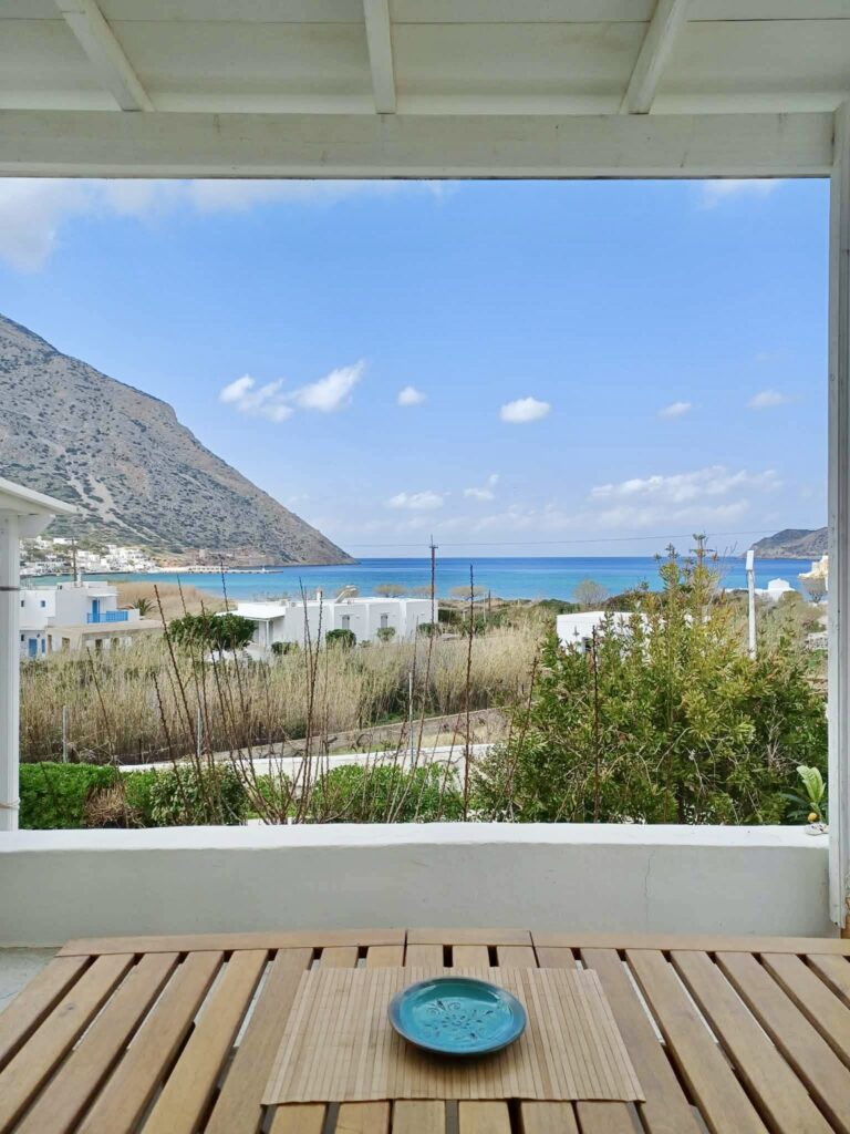 At the picturesque bay of Kamares, just 100 meters away from the sandy beach, of Kamares, one comes across the “Alkyonis Villas”, a small suites complex composed of 10 suites, designed by the famous architect Doris, in typical cycladic style. All suites are equipped with double or single built-in beds, a leaving room with sofas and a fully equipped kitchen with a dining area, a bathroom with shower. The size of the suites varies from 40 to 90 sq. meters. All suites have verandah or balconies, that allowing guests to enjoy sea view or watch the most breathtaking sunset of Sifnos.