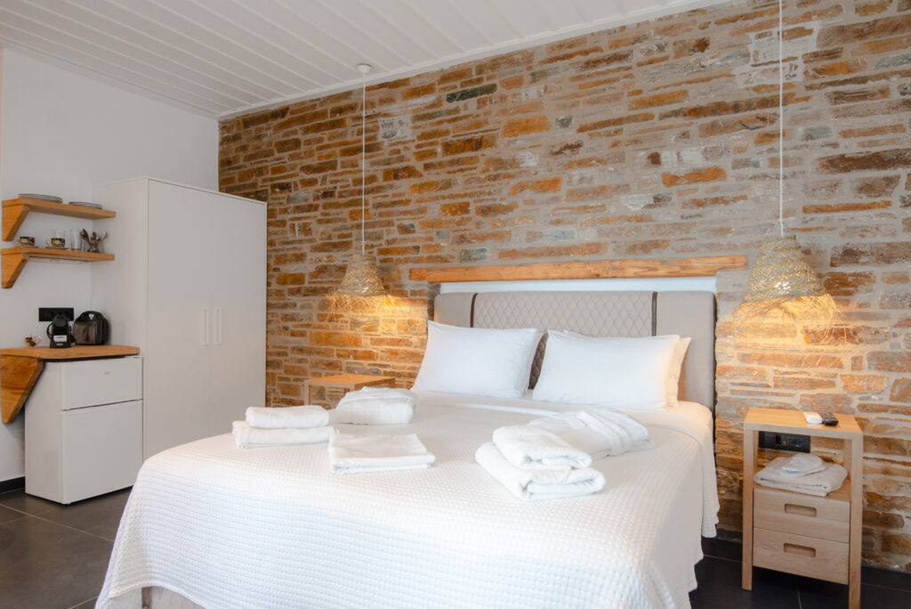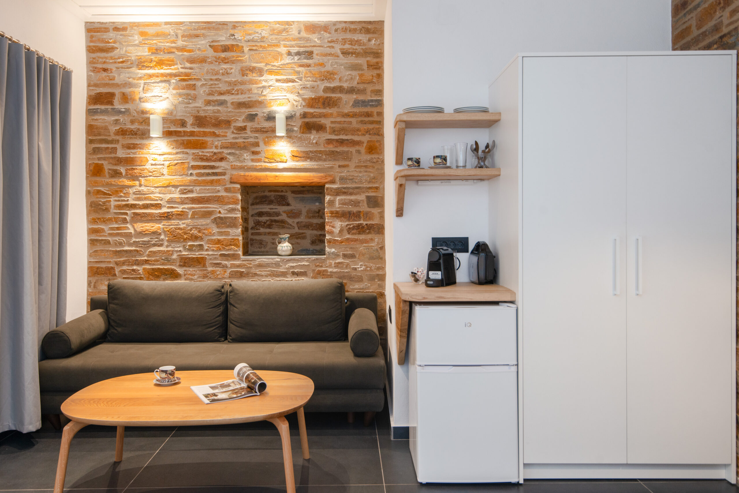 Overlooking the picturesque bay “Lazarou” and near the sunny endless beach of Platis Gialos a four-apartment vacation complex built with stones and offering high comfort and sensational view to Aegean sunrise and sunsets. At White & black Suites, there is a breakfast area, a specially designed deck by the sea with sun-beds and umbrellas and a beach bar. Near Lazarou Beach Suites, there is the Platis Gialos village, small shopping center with café lounges, restaurants and tavernas by the sea but also various shops with all kinds of goods plus traditional sifnian pottery.